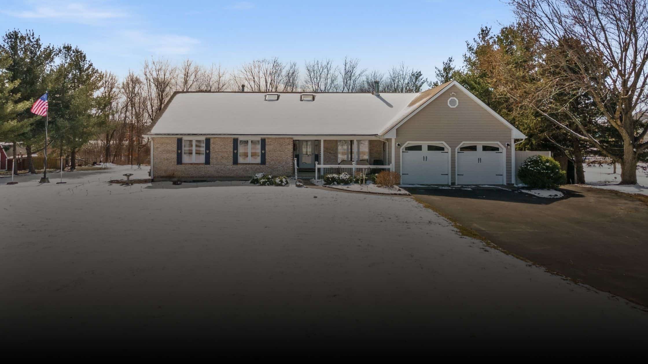 Nestled on a beautifully landscaped 1-acre lot in the sought-after Pine Ridge Subdivision, this stunning 5-bedroom, 3.5-bathroom brick and cedar ranch home offers both charm and modern convenience. A welcoming front porch invites you in, while the large backyard deck and patio with a firepit create the perfect setting for outdoor gatherings. Inside, the main level features an elegant living and dining room, along with a spacious eat-in kitchen boasting hardwood flooring, a stylish backsplash, recessed lighting, a bayed eating area, and upgraded granite countertops (installed in 2021). The cozy family room is a standout with its beautiful trim detail, masonry gas log fireplace, and sliding door leading to the deck. This level also includes three bedrooms, with the primary suite offering a walk-in closet, a whirlpool tub, and a separate shower for added luxury. The finished walkout basement expands the living space with two additional bedrooms, a home office, a spacious recreational room with patio access, a bonus room, a bar area, and ample storage. Convenience is key with a laundry room in the basement and an optional hookup in the first-floor mudroom. Modern upgrades include a smart thermostat, a new roof (2020), and a recently pumped septic system. Additional updates include three new garage doors, a new roof on the outbuilding, a sealed driveway (last fall), a new HVAC and water heater (4 years ago), fresh landscaping (4 years ago), a new deck and exterior paint (6 years ago), and a 2-car garage with a 26x36 heated outbuilding. This home perfectly blends functionality, comfort, and style in a prime location.