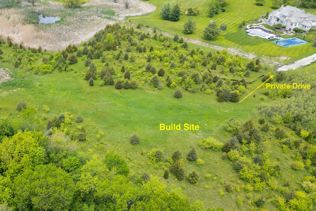 You can build your dream home just minutes from the downtown village of Barrington in a prime location on this 6.6 acre lot in the upscale subdivision of Grassmere Farms! Situated at the end of a cul-de-sac is the private drive to your secluded lot with beautiful evergreen trees surrounding the build site. Owner has completed the preliminary work of installing a permitted gravel driveway meeting all necessary requirements to access the build site. See the Village of North Barrington website for updates related to storm water drainage project on Route 59 involving US Army Corp of Engineers, Illinois Department of Transportation, and Lake County Stormwater Management. Drainage project is slated for Fall of this year. The project will improve the water drainage on the west side of the property on Route 59. The new owner will inherit an easement lease agreement to include two cash payments of $12,200 each from the village, one in August and another in January 2026. Per the Village of North Barrington, the drainage project will not impede construction of a new home on the build site. All of the difficult preliminary work has been completed with Village of North Barrington and Army Corps to secure access to the build site. Seller will provide all former surveys and the soil test report. Septic design will depend on the size and scale of the home. All permits will be thru the Village of North Barrington. Award winning schools, close to the metra, shopping and great restaurants are all within minutes of this unique lot!