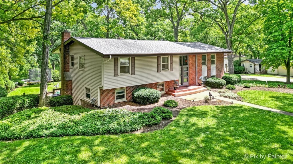 Private Retreat on Nearly 10 Acres with Endless Possibilities! Tucked away down a winding private driveway, this beautifully maintained 5-bedroom, 3-bath custom home is nestled among towering oaks and manicured grounds, offering rare privacy and tranquility-just minutes from I-90. Step into a bright open foyer where oversized windows flood the space with natural light. The spacious living room with hardwood floors flows seamlessly into the formal dining room, featuring French doors that open to a massive custom deck with a spiral staircase leading down to a lower-level concrete patio-perfect for relaxing or entertaining. The updated kitchen boasts granite countertops, tile backsplash, a center island with breakfast bar, recessed lighting, and direct deck access. The primary suite includes a private bath with walk-in shower, while the secondary bedrooms are generously sized-one. The walkout lower level offers a cozy family room with fireplace, a wetbar, direct patio access, a flex room that can serve as a 5th bedroom, office, or playroom, plus a dedicated laundry/utility room. Enjoy direwetteress to the attached 2-car garage with epoxied floors, leading to a 36x28 heated workshop. Additional outbuildings include a 30x25 pole barn with concrete floors and second-level storage, a charming 3-season coach house, and multiple storage sheds. Recent Major Updates: New roof on workshop (2024), New electrical panels & manual generator switch (2024), New water heater, AC system & ductwork (2024), New attic insulation (2023), New washer, dryer, fridge, and wet bar (2025), New fence (2024). Outdoors, explore your private walking trail through the woods, complete with a cleared bonfire/campsite area-the perfect escape into nature. With great visibility from Burlington Rd yet set far back for total serenity, this property is ideal for those seeking a peaceful residence, home-based business setup, or multi-use space. Lovingly cared for and move-in ready-this one-of-a-kind property is a true hidden gem.