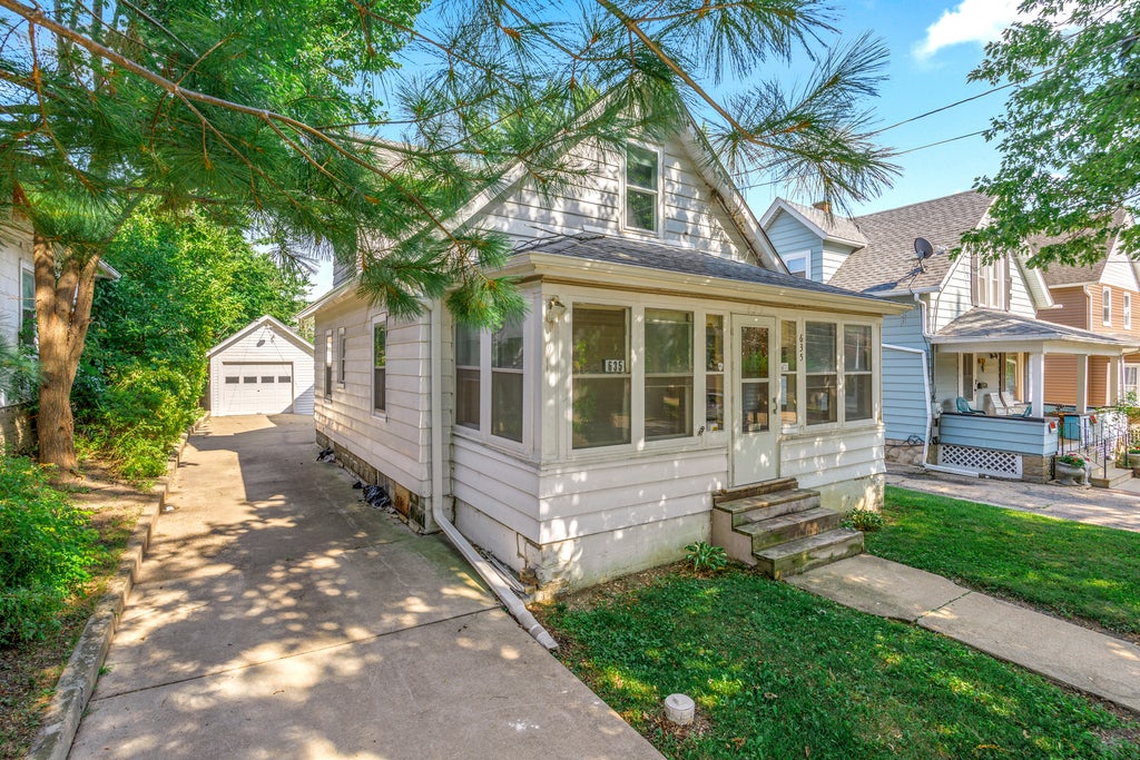 UNIQUE & AFFORDABLE. This 3 bedroom, 2 full bath home offers a great opportunity to own vs. renting. Fresh updates include NEW carpet in the main living/dining area plus a kitchen makeover including NEW cabinets, NEW counters & sink, NEW flooring & NEW appliances. Other features include an enclosed front porch, a sitting area & den/flex room on the second level, hardwood or plank vinyl flooring in the bedrooms plus a partial basement. Outside enjoy the oversized backyard that includes an oversized single car garage with built-in service pit for auto enthusiasts. NEW high efficient furnace (2024) & water heater (2019) provide extra value. Conveniently located to community establishments including shopping, restaurants, entertainment, train station & more. Strictly SOLD AS-IS, cash or conventional only.