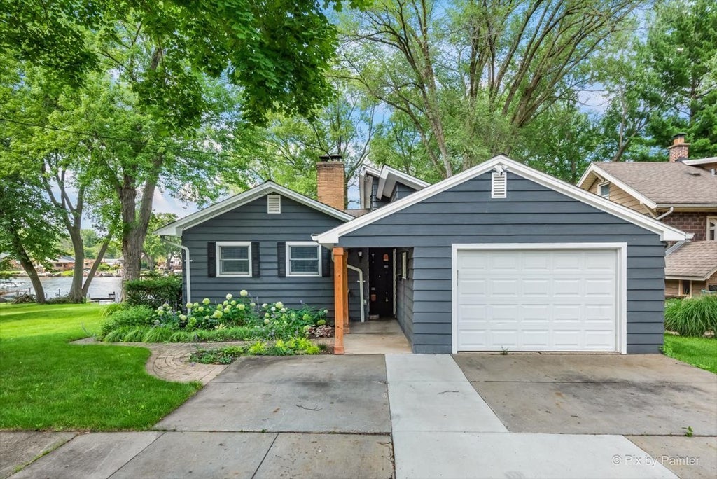 Lifestyle WATERFRONT LIVING in FOX RIVER GROVE. EXPANSIVE WATERFRONT VIEWS FROM EVERY ANGLE. THIS OPEN CONCEPT RANCH FLOOR PLAN HAS BEEN UPDATED THROUGHOUT WITH STYLISH FINISHES. WIDE PLANK HARDWOOD FLOORS THROUGHOUT THE SPACIOUS LIVING ROOM, DINING ROOM AND KITCHEN. STONE FIREPLACE WITH GAS LOGS. RELAX ON THE MASSIVE BRICK PAVER PATIO FEATURING a BUILT IN GRILLING/REFRIGERTION CENTER and a HOT TUB! ADDITIONAL PATIO AREA at the RIVER'S EDGE AND PERMANANT PIERS IN THE WATER! THERE'S ALSO A HEATED ONE CAR GARAGE. ALL OF THIS AND IT'S ON CITY SEWER AND WATER!