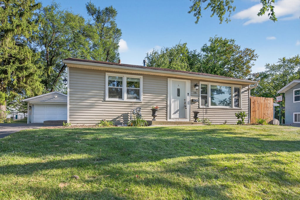 Charming 3-Bed/1-Bth ranch in Carpentersville! This beauty has been updated and is ready for new owners. The moment you enter the front door you're greeted by a bright and spacious living room and kitchen. The living room features gorgeous hardwood floors that flow throughout most of the home, neutral paint colors, recessed lighting and crown molding for a touch of elegance. The large kitchen has all SS appliances, a beautiful, crisp white subway tile backsplash, plenty of cabinet space and room for a breakfast table. Three comfortable bedrooms with great closet space and an updated bath round out this home. The laundry room is located in one of the bedrooms for added convenience. There is also plenty of storage space. Outside, enjoy the private, fenced-in yard (6-ft privacy fence) with beautiful landscaping and mature trees. Detached 2-car garage with extra long driveway. Updates include new furnace & AC 2015, new appliances 2022, kitchen reno 2023, new water heater 2024, new washer & dryer 2024 and so much more. You truly can't beat this home or it's location - just minutes to the elementary and high school plus close to parks, groceries, restaurants and more! Schedule your tour today - this one won't last long!