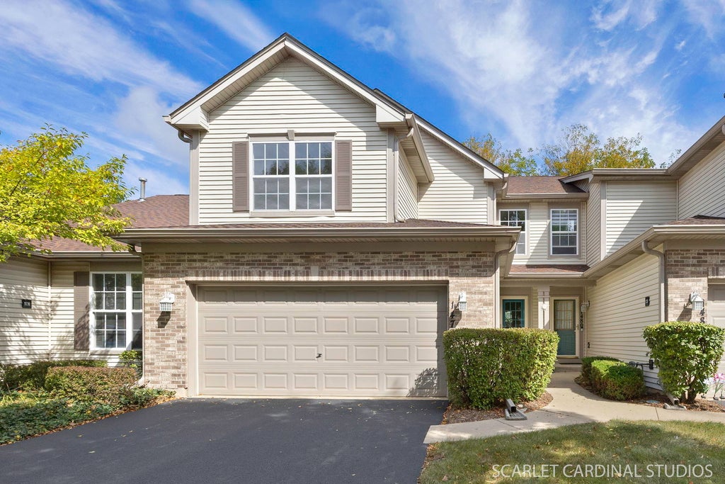 Beautifully Updated/TURN KEY 2 Bedroom, 2.1 Bath Town Home with Spacious Loft in lovely Private Community! Step into this bright, airy, and move-in-ready home featuring a freshly painted interior-including trim, all new carpeting and luxury vinyl plank flooring, and refinished hardwoods in the dramatic two-story family room and adjoining dining area. The kitchen shines with new quartz countertop and stylish subway tile backsplash. Updated, on-trend lighting and ceiling fans throughout. A sliding glass door leads to your own private patio-perfect for relaxing or entertaining. Upstairs, expect a primary bedroom with private ensuite bath and spacious walk in closet with built-ins, an additional bedroom; full hallway bath; and a large loft that offers flexible space for a home office, media room, or potential 3rd bedroom. Enjoy the convenience of a main floor laundry room, a 2-car attached garage, and the peace of a quiet, private neighborhood with meandering walking paths. This move in ready home offers the perfect blend of comfort, style, and the ease of maintenance free living! Buy, move in, unpack.....Enjoy! 2025 Updates- Interior painting including all trim, light fixtures & ceiling fans throughout, carpeting (stairs, second floor hallway & bedrooms, LVT flooring (foyer, powder room, hallway, kitchen, laundry room, second floor bathrooms) refinished wood flooring in family room and dining room, quartz countertops, subway tile backsplash, cabinet hardware, front door and door to garage hardware, primary bath tub & tile surround.