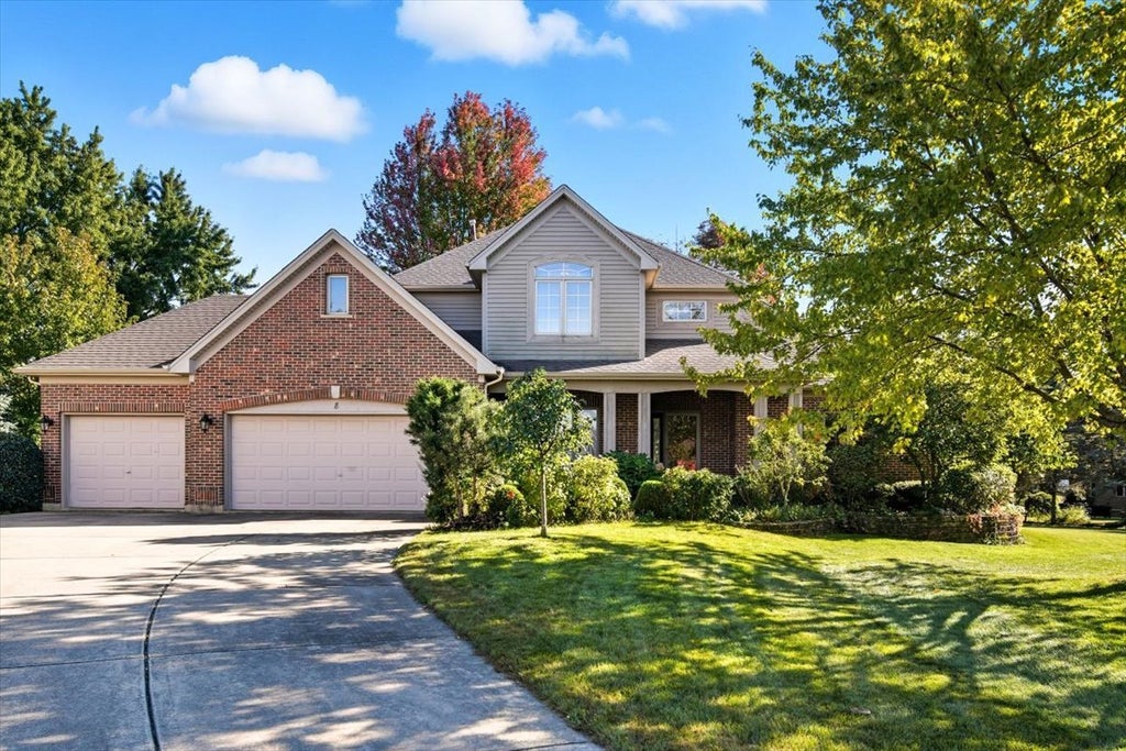Beautiful Brick-Faced Home in the Highly Desirable Prestbury Subdivision! Impressive 3-bedroom, 2.1-bath home with a 3-car garage, situated on a quiet cul-de-sac. The subdivision offers a clubhouse, pool, pickleball/tennis courts, basketball and a scenic pond/lake - all within minutes of I-88, golf, and shopping. This home features a spacious main-level primary master suite with a large walk-in closet and an oversized master bath. The two-story living room with fireplace is grand and inviting, hardwood floors throughout most of the main level, and an open kitchen leading to a beautiful deck - perfect for outdoor relaxation or entertaining. The full English basement with 9' ceilings is roughed in for a full bathroom and ready for your finishings, offering potential for a 4th bedroom or recreation space. The second-floor bedroom includes huge and unique walk-in closet that can be converted to a den or playroom. Laundry room is perfect for storing everything. Excellent location, beautiful setting, and endless potential - this home has it all! Being Sold As-Is.