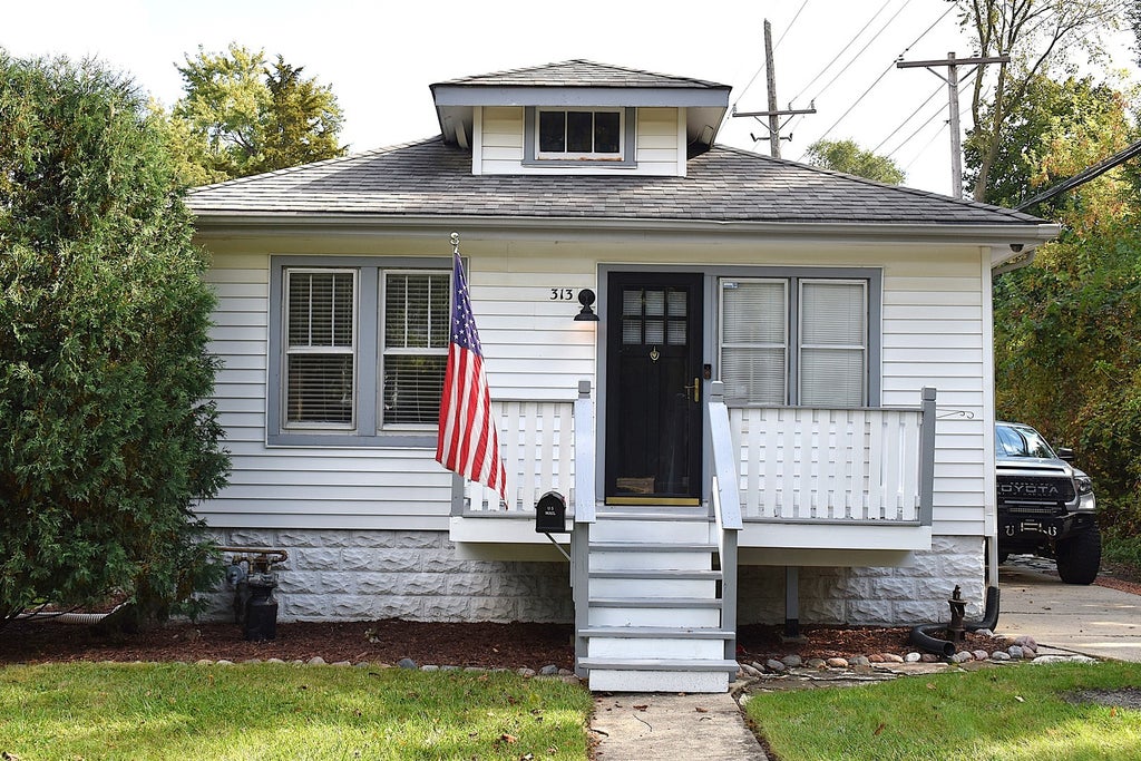 Welcome to 313 S Lombard - An adorable 2 bedroom/2 bathroom bungalow next to the Prairie Path. Your first steps inside lead to an inviting entryway with an abundance of natural light. Next, head into the living room with hardwood floors and recessed lighting (on a dimmer) combined with the dining space. Enjoy the natural light streaming through the kitchen skylights, highlighting the newer kitchen floors, countertops, and fresh paint. The first floor bathroom has been remodeled with a fresh, modern design. The backyard patio or screened in porch are the perfect spots to enjoy a quiet morning coffee or unwind at the end of the day. The home is close to the park, pool and metra station. Being sold As-Is with Home Warranty